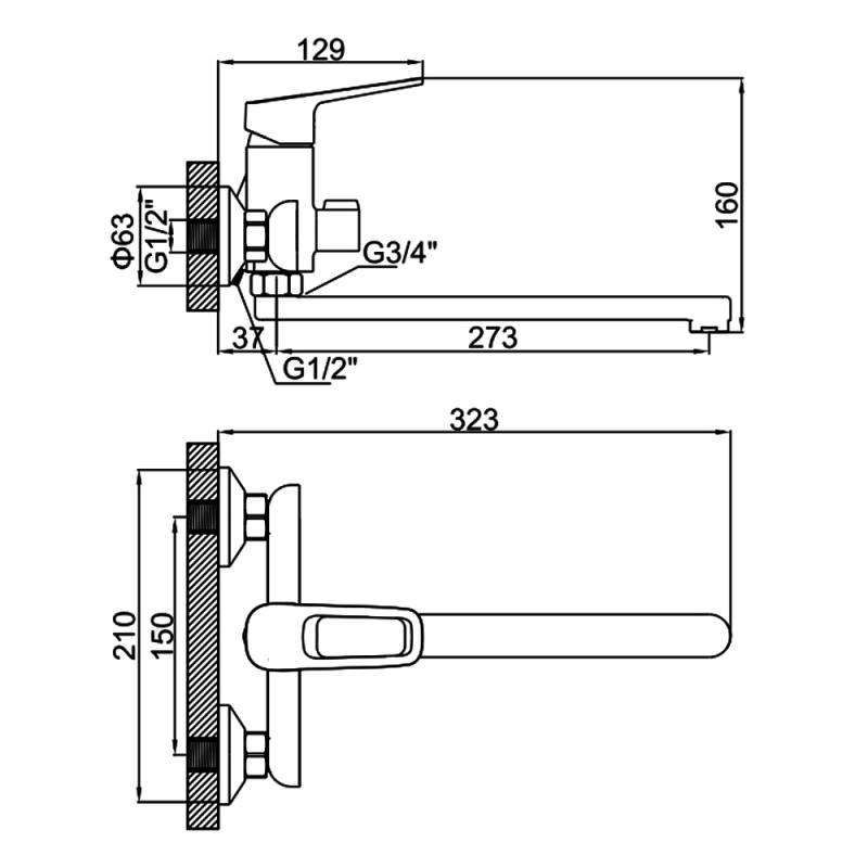 Душевой шланг 150 см, Душевая лейка, Держатель лейки, Комплект отражателей, Комплект эксцентриков