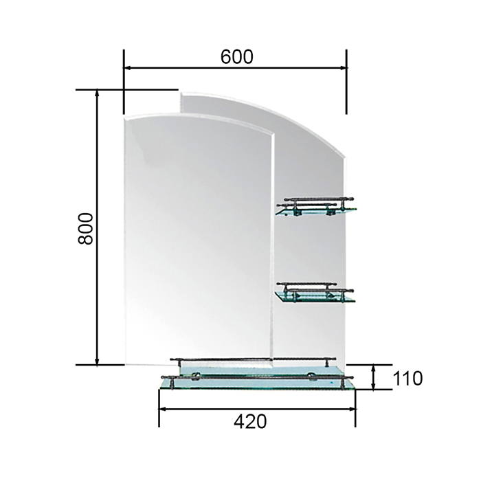 • 3 стеклянные полочки из бесцветного прозрачного стекла